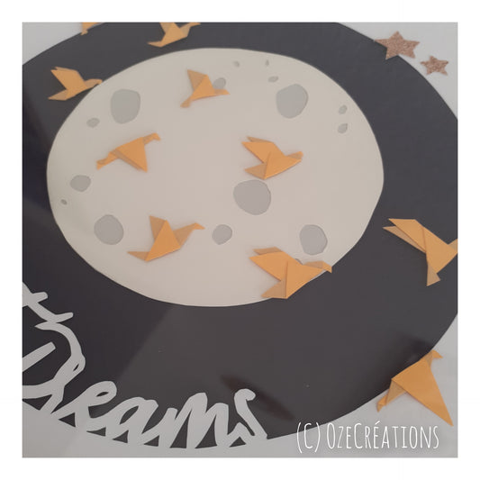 Affiche encadrée personnalisable - Lune et Origamis