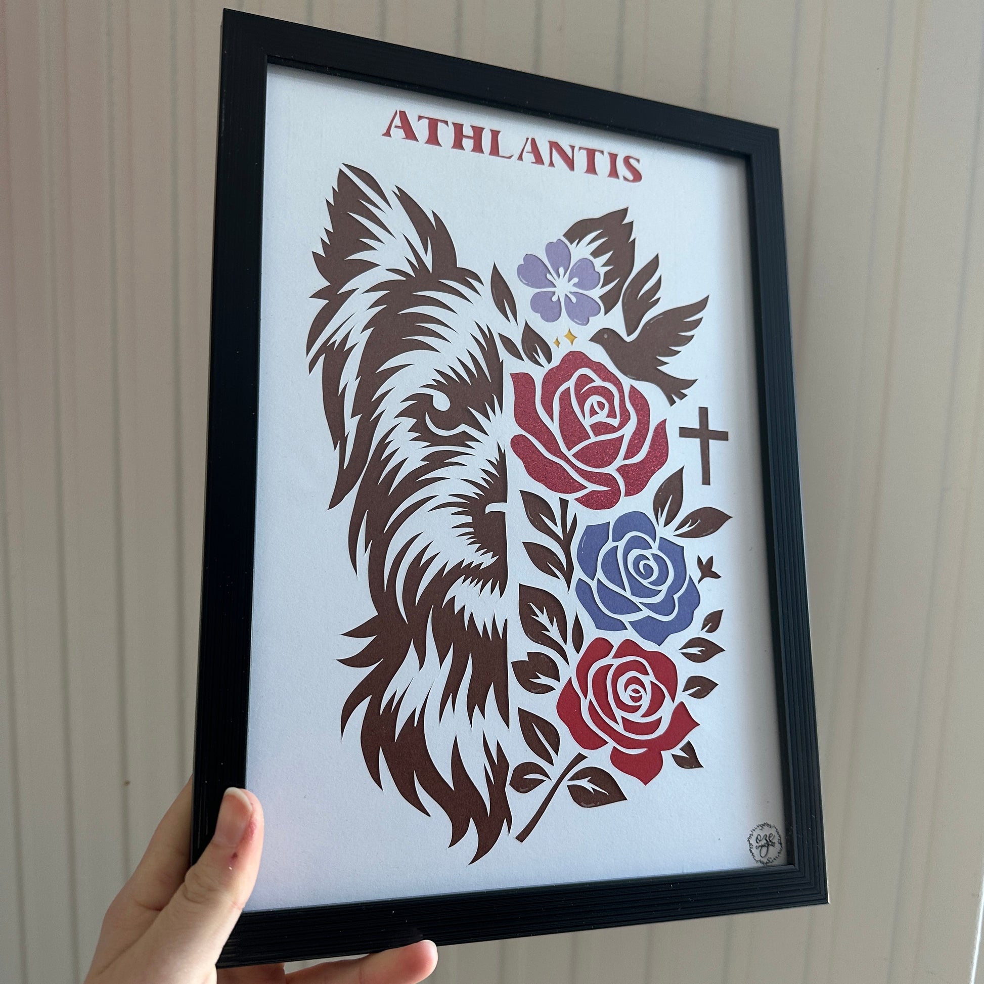 Affiche encadrée 21x29,7cm (A4) sur thème Chien Fleuri | Papier découpé à la main