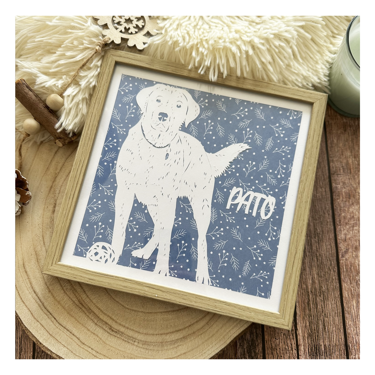 Affiche encadrée 18x18 Portrait Animalier Chien | Papier découpé à la main