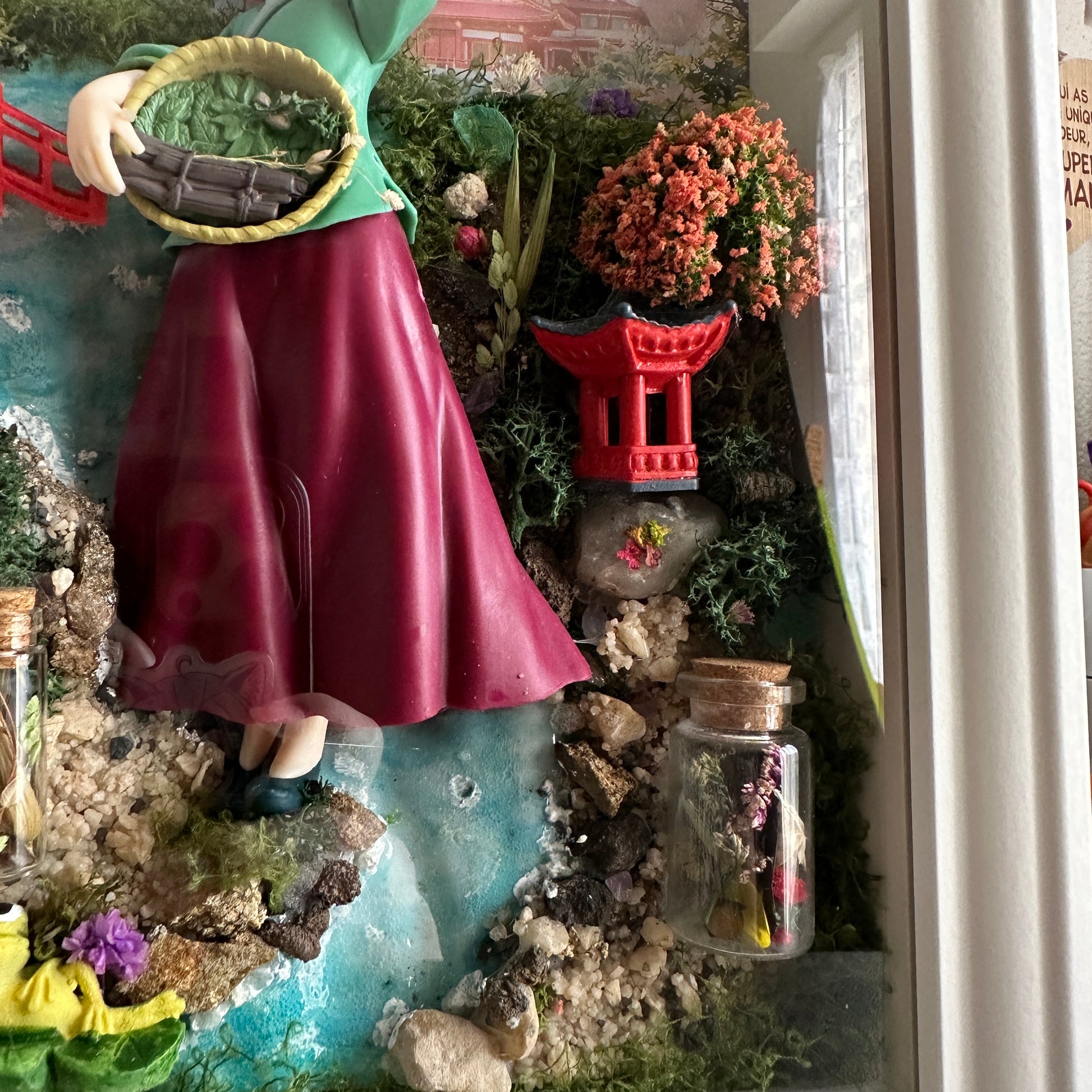 Plongez dans l’univers de Maomao, a navigatrice emblématique des Carnets de l’Apo, à travers ce tableau diorama 3D entièrement fait main.